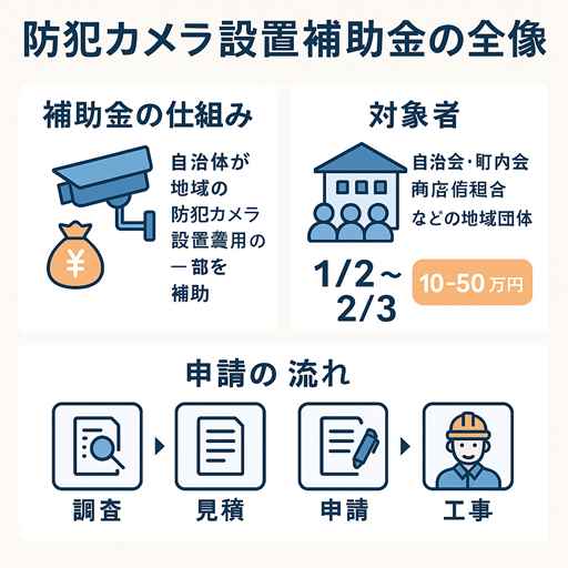 自治体が地域の安全を高めるために、防犯カメラ設置費用の一部を補助する制度 のことです。